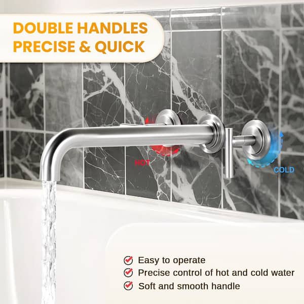 2-Handle Wall Mount Roman Tub Faucet with 12 in. Long Spout Reach in. Brushed Nickel (Valve Included)