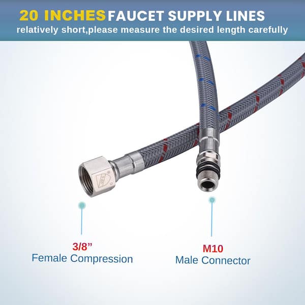 (2 Pack) 20 in. 3/8 in. Female Compression x M10 Male Connector Braided Nylon Faucet Supply Line