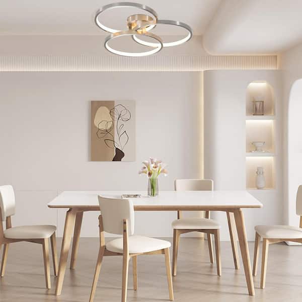 20 in. Modern Chrome LED Ceiling Light, 3-Ring Flush Mount Fixture for Living Room, Bedroom, or Dining Room