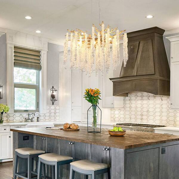 23.6 in. Modern 8-Light Gold Chandeliers Light with Cascading Crystal Strands(No Bulbs Included)