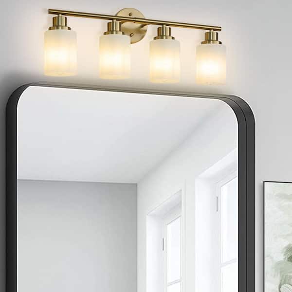 24.4 in. Modern 4-Light Bathroom Vanity Light, Frosted White Glass with Gold Iron Frame (Bulb Not Included)
