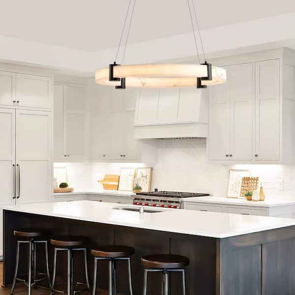 24 in. Round Modern LED Pendant Light with Adjustable Height and Imitation Marble Finish Resin Ring