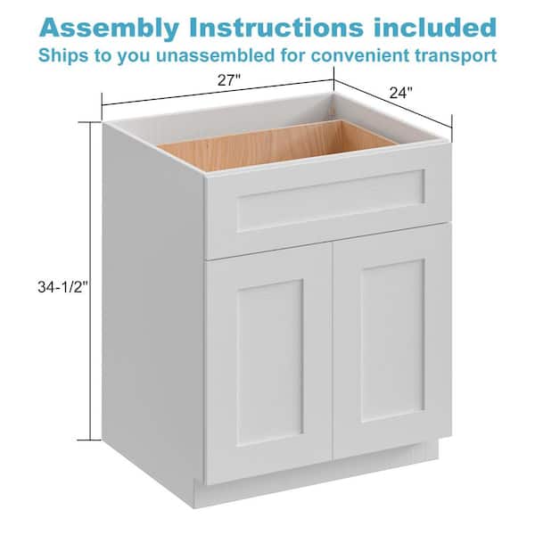 27 in. W x 24 in. D x 34.5 in. H Plywood Ready to Assemble Shaker Base Kitchen Cabinet with Adjustable Shelves in Gray