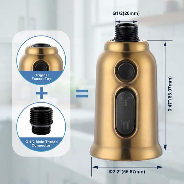 3-Function Kitchen Faucet Spray Head Replacement in Brushed Gold