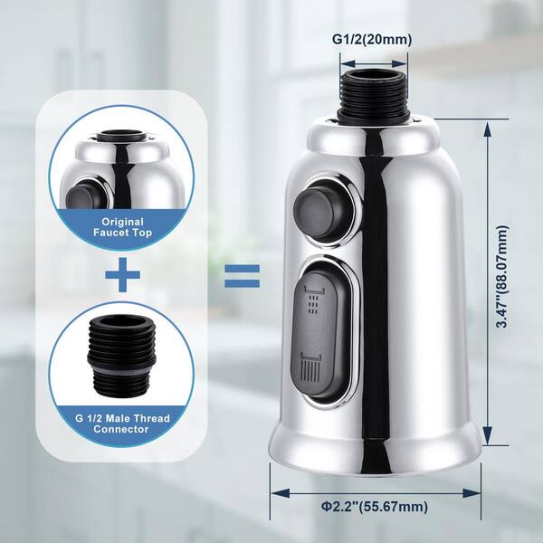3-Function Kitchen Faucet Spray Head Replacement in Polished Chrome