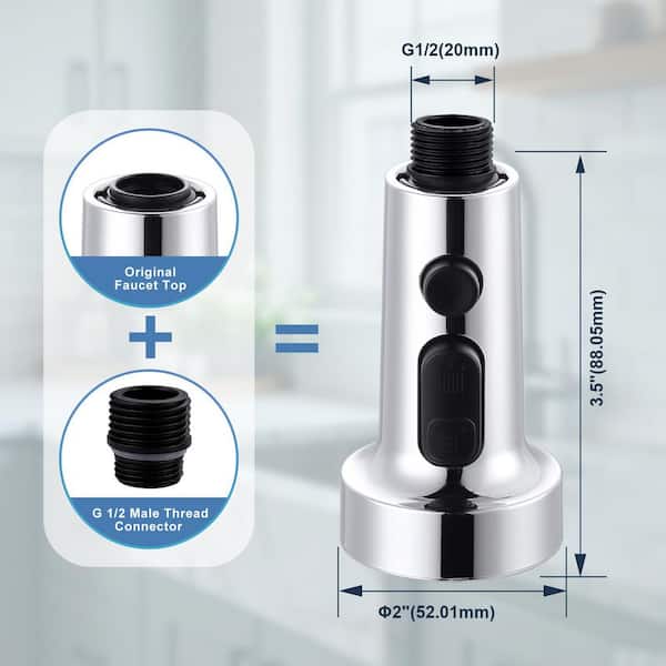 3 Function Kitchen Faucets Head Replacement with 9-Adapters in Polished Chrome