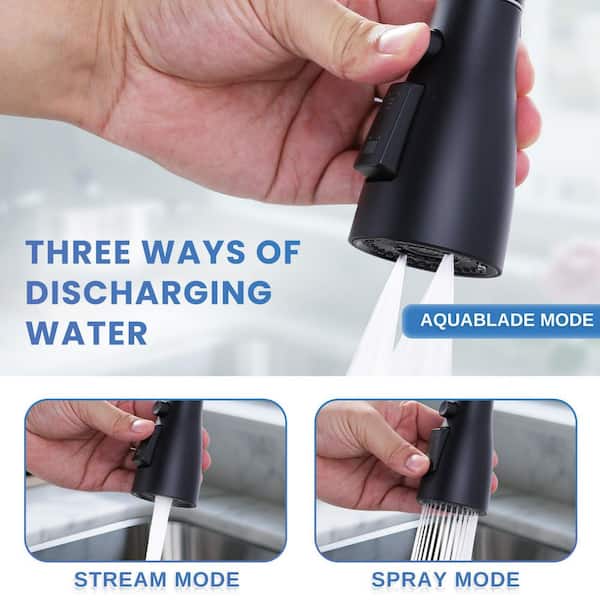 3 Functions Sprayed Pull Down Kitchen Faucet Spray Replacement with Adapters in Matte Black
