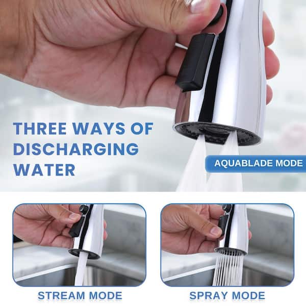 3 Functions Sprayed Pull Down Kitchen Faucet Spray Replacement with Adapters in Polished Chrome
