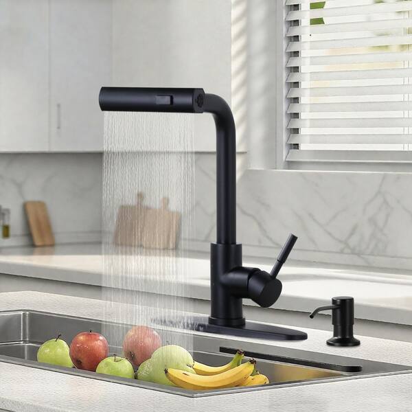 3 Modes Single Handle Waterfall Pull Down Sprayer Kitchen Faucet with Soap Dispenser in Oil Rubbed Bronze