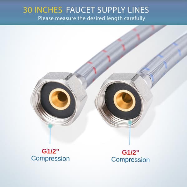 30 in. 1/2 in. Compression x 1/2 in. Compression Braid Stainless Steel Faucet Supply Line