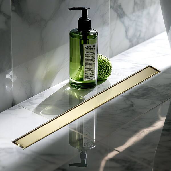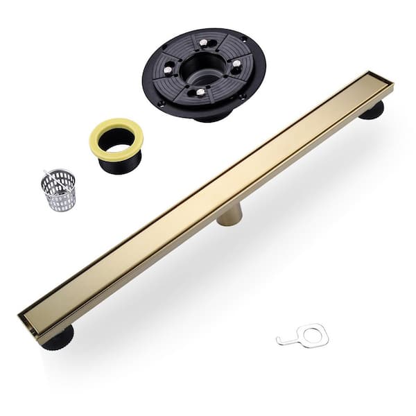 32 in. Stainless Steel Tangular Linear Shower Drain with Tile-in Cover in Brushed Gold