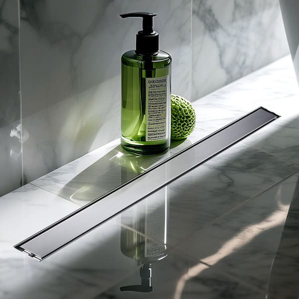 32 in. Stainless Steel Tangular Linear Shower Drain with Tile-in Cover in Brushed Nickel