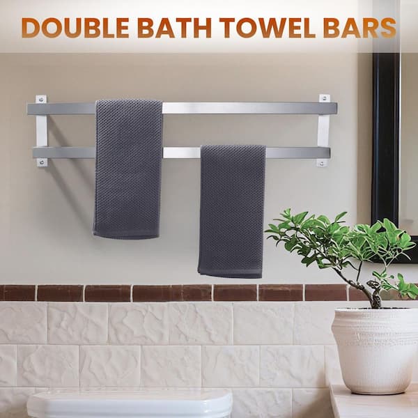 32 in. Wall Mounted Double Towel Bar Bath Hardware Accessory in Brushed Nickel