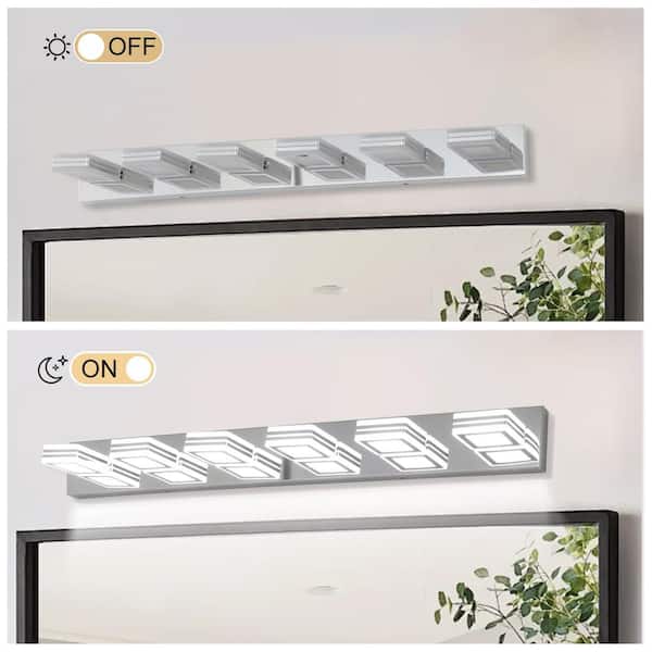 38.9 in. 6 Light Chrome LED Vanity Light Over Mirror with Frosted Acrylic Shade with 360° Rotatable Joint for Bathroom