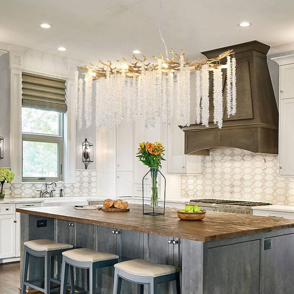 39.3 in. Modern 8-Light Gold Chandeliers Light with Cascading Crystal Strands(No Bulbs Included)