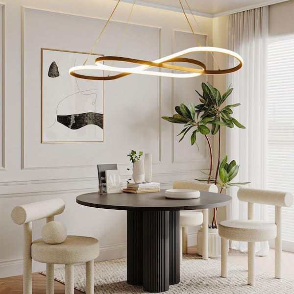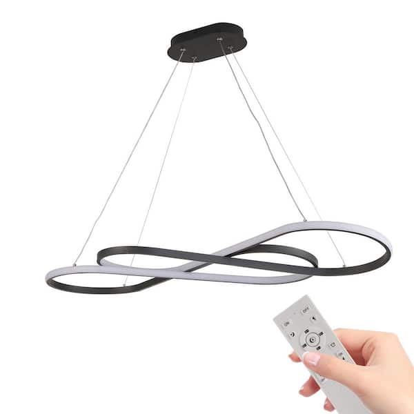 39 in. Modern LED Pendant Light with Infinity Design Hanging Ceiling Fixture and Adjustable Height in Matte Black
