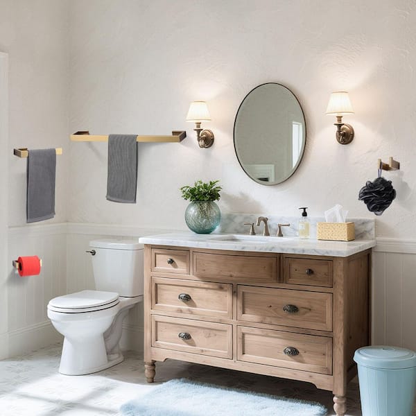 4-Piece Bath Hardware Set with 24 in. Towel Bar Toilet Paper Holder and Towel Hook in Brushed Gold