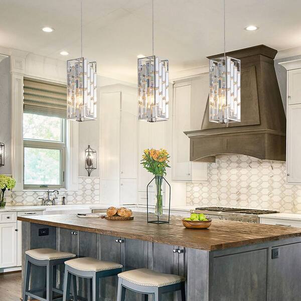 4 in. 60W 1-Light Chrome Crystal Pendant Light Mini with Adjustable Hanging Ceiling Height, Bulb Not Included (3 Pack)
