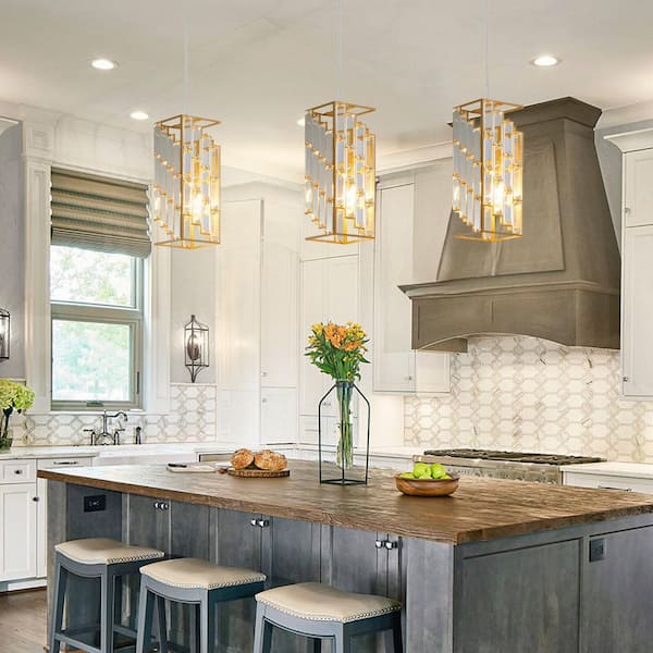4 in. 60W 1-Light Gold Crystal Pendant Light Mini with Adjustable Hanging Ceiling Height, Bulb Not Included (3 Pack)