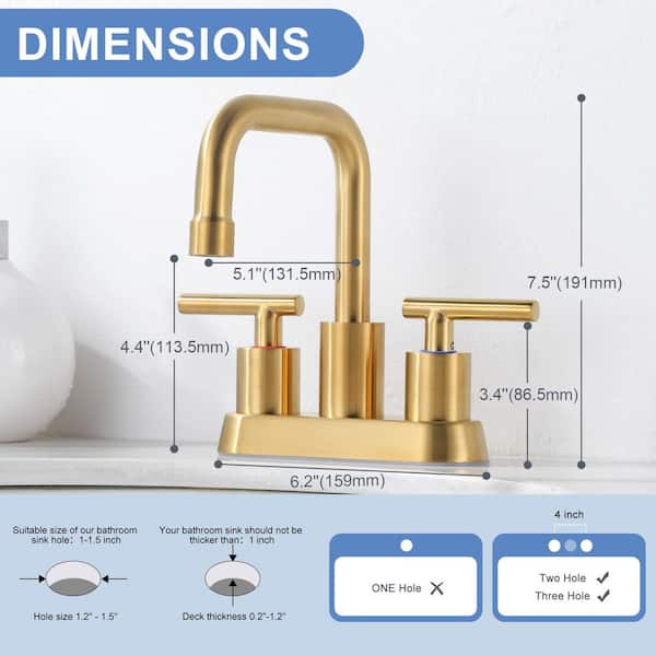 4 in. Centerset 3-Hole Double-Handle Bathroom Sink Faucet with Pop-Up Drain in Brushed Gold