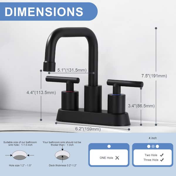 4 in. Centerset 3-Hole Double-Handle Bathroom Sink Faucet with Pop-Up Drain in Matte Black