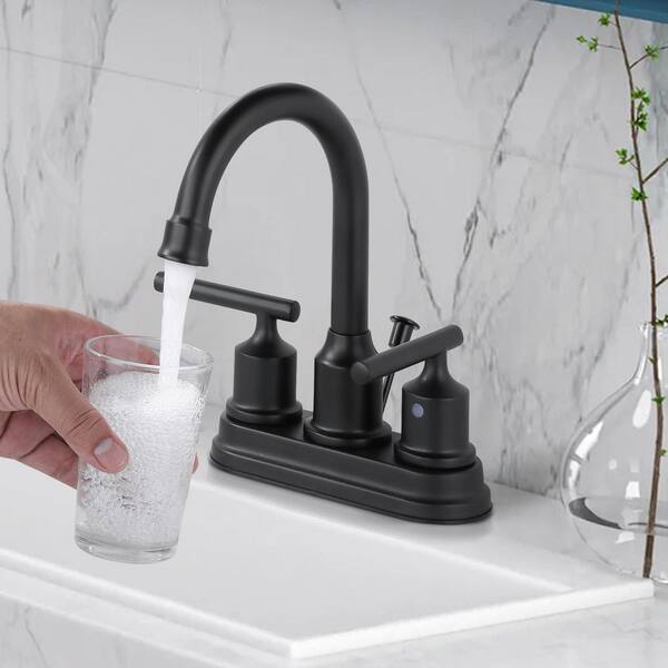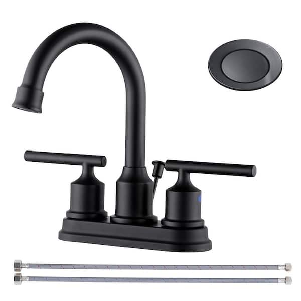 4 in. Centerset Deck Mount Double Handle Bathroom Faucet with Pop-Up Drain Included in Matte Black