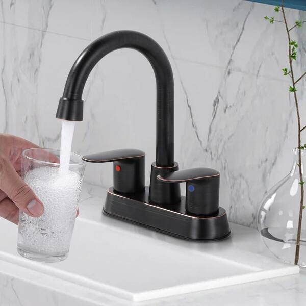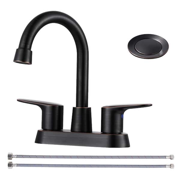 4 in. Centerset Double Handle High Arc Bathroom Faucet with Pop-Up Drain Included in Oil Rubbed Bronze
