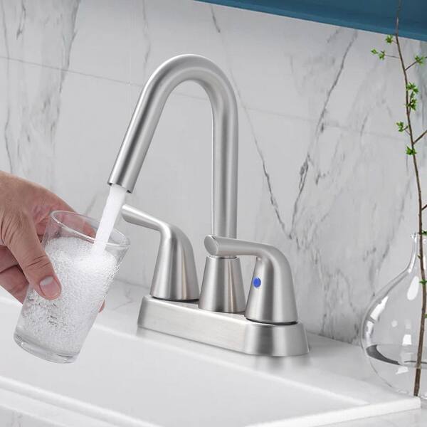 4 in. Centerset Double Handle High Arc Bathroom Faucet with with Pop-Up Drain Stopper and Supply Hoses in Bruhsed Nickel