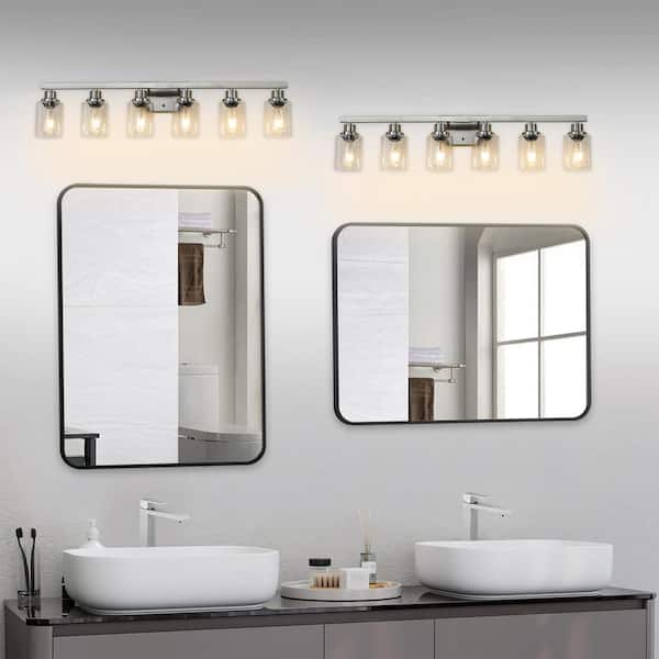 42.3 in. Farmhouse 6-Light Brushed Nickel Bathroom Vanity Light Vintage Wall Light in Bronze, Bulbs Not Included