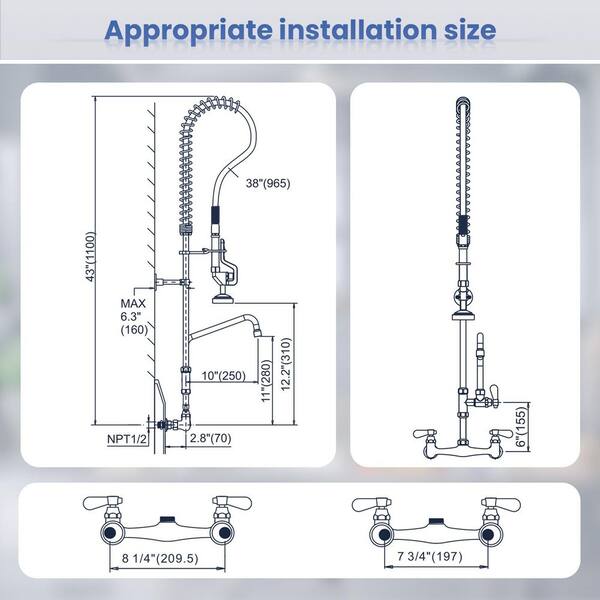 43 in. H Commercial Triple-Handle Pull Down Sprayer Kitchen Faucet with 360° Spout Swivel in Polished Chrome