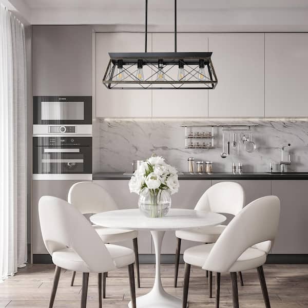 5-Light Golden Black Wood Farmhouse Chandelier with Rectangle Frame and Adjustable Height for Kitchen Island (No Bulbs)