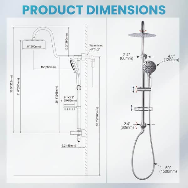 7-Spray 8 in. Wall Mount Double Shower Head and Handheld Shower Head with Adjustable Soap Bracket in Brushed Nickel