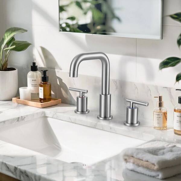 8 in. Widespread Deck Mounted Double Handle Bathroom Faucet in Brushed Nickel
