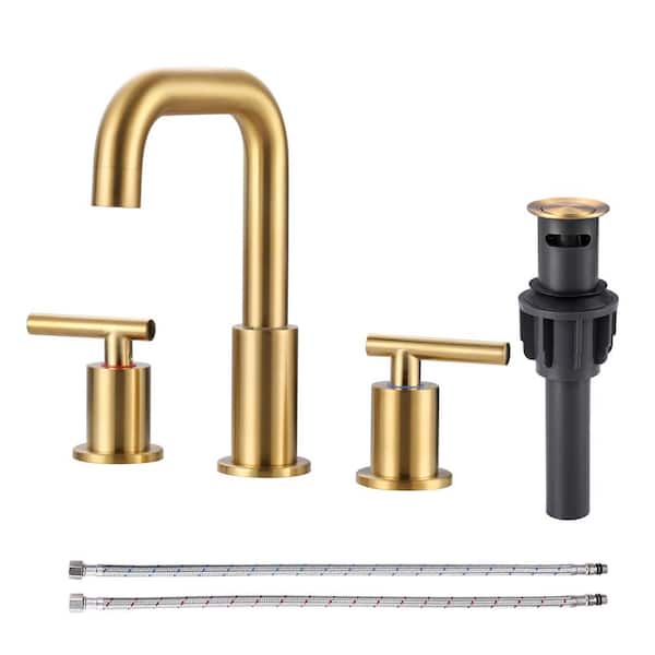 8 in. Widespread Deck Mounted Double Handle Bathroom Faucet in Gold