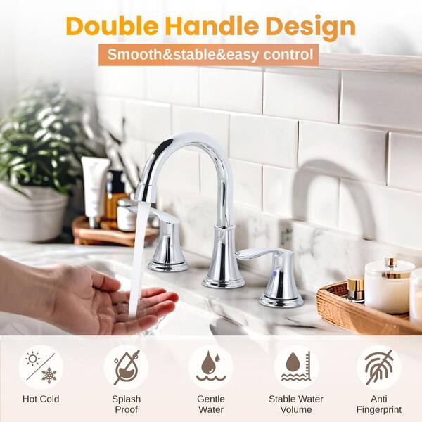 8 in. Widespread Double Handle Bathroom Faucet with Drain Kit Included and Supply Line in Polished Chrome