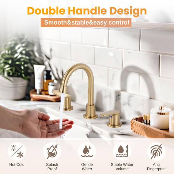 8 in. Widespread Double Handle Bathroom Faucet with Pop-Up Drain Included in Gold