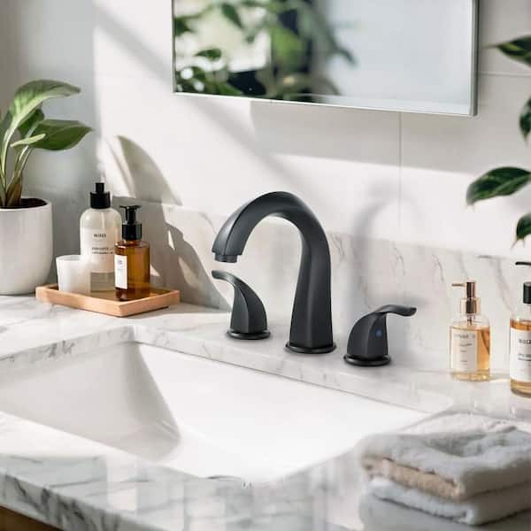 8 in. Widespread Double Handle Bathroom Faucet with Pop-Up Drain Included in Matte Black