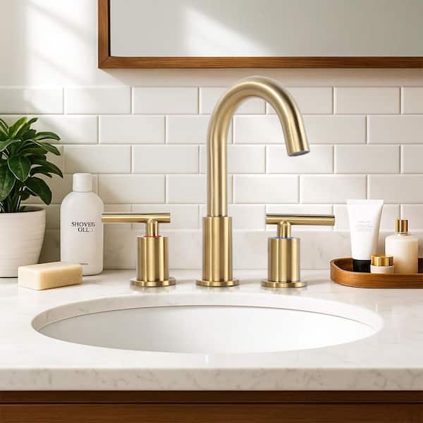 8 in. Widespread Double Handle Bathroom Faucet with Pop Up Drain and Supply Lines in Brushed Gold