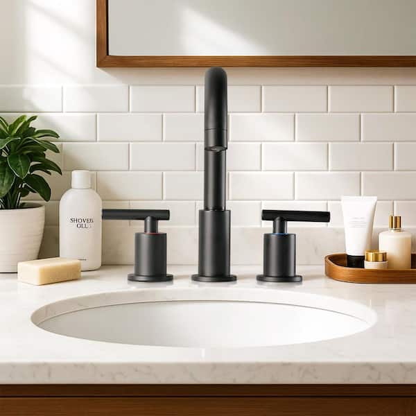8 in. Widespread Double Handle Bathroom Faucet with Pop Up Drain and Supply Lines in Matte Black