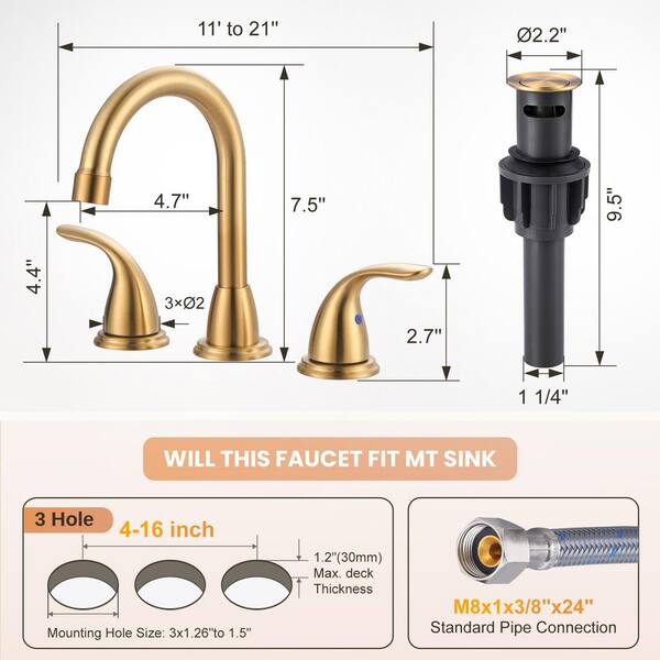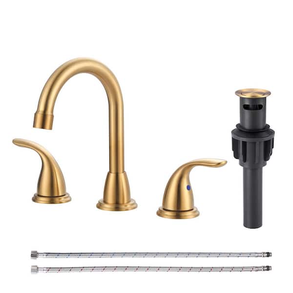 8 in. Widespread Double-Handle Bathroom Faucet with Pop-Up Drain in Brushed Gold