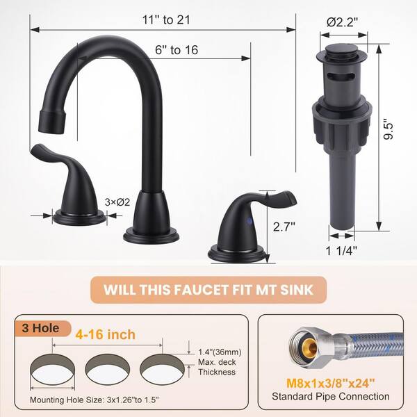 8 in. Widespread Double-Handle Bathroom Faucet with Pop-Up Drain in Matte Black