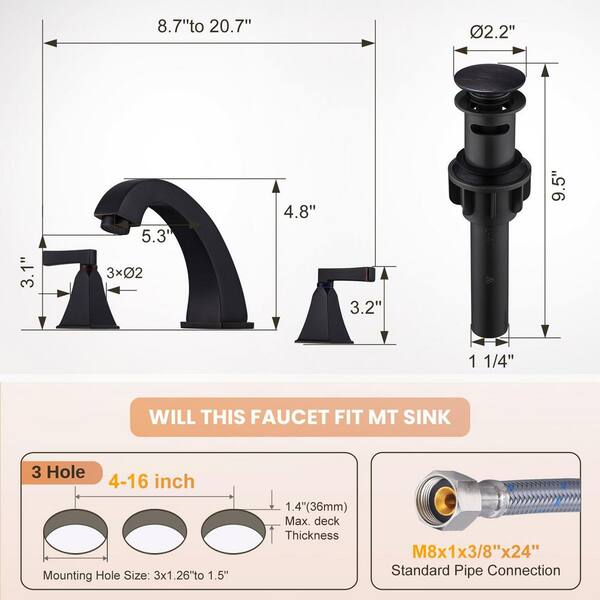 8 in. Widespread Double Handle Bathroom Faucet with Pop-Up Drain in Oil Rubbed Bronze