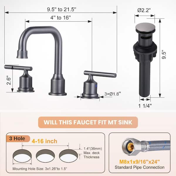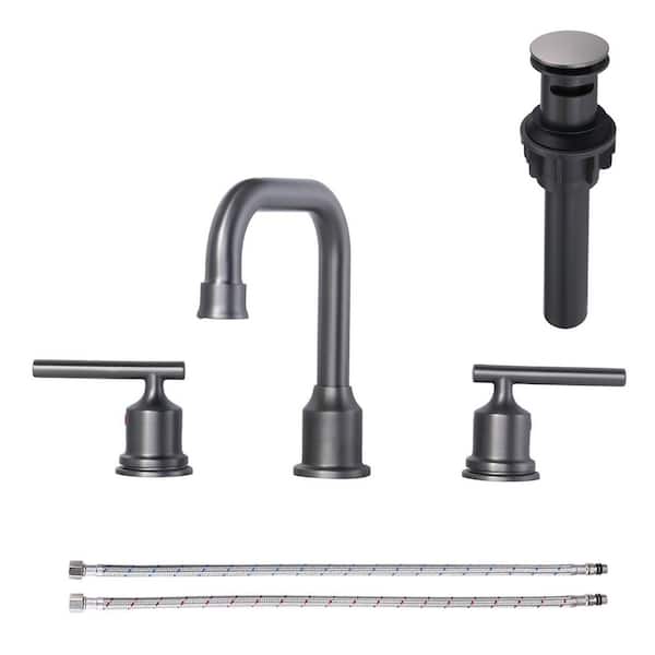 8 in. Widespread Double Handle High Arc Bathroom Faucet with Drain Kit Included in Black Stainless