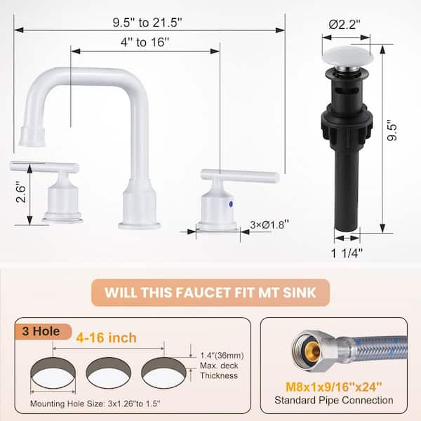 8 in. Widespread Double Handle High Arc Bathroom Faucet with Drain Kit Included in Matte White