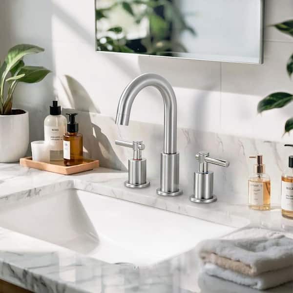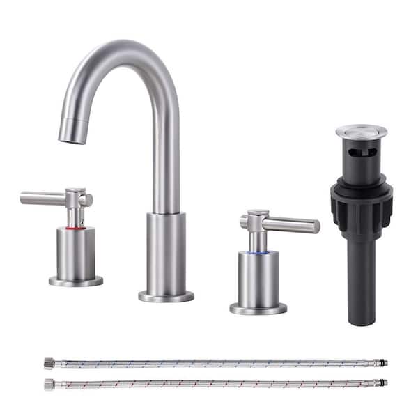 8 in. Widespread Stainless Steel Double Handle Bathroom Faucet with Pop-up Drain and Supply Hoses in Brushed Nickel