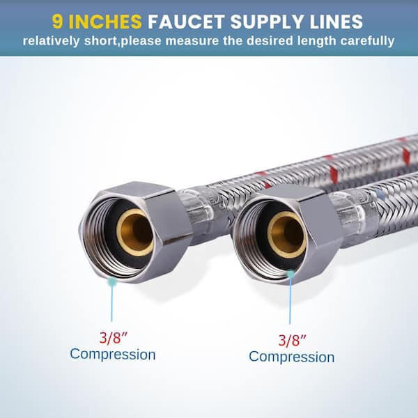 9 in. 3/8 in. Compression x 3/8 in. Compression Braided Stainless Steel Faucet Supply Line