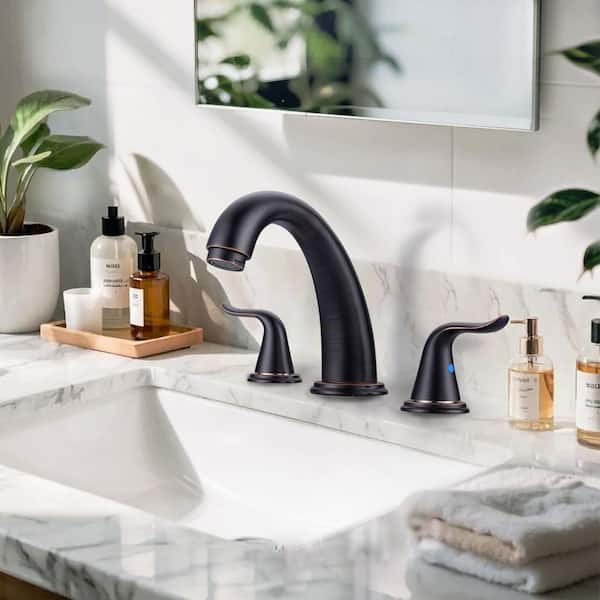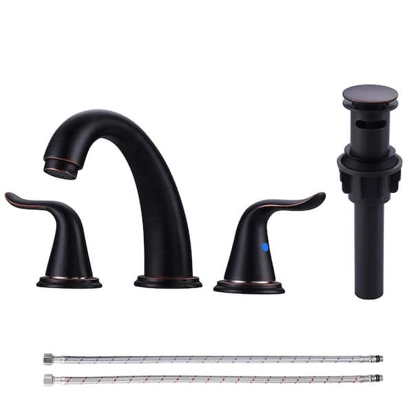 Double Handle 8 in. Widespread Bathroom Faucet, 3-Hole Faucet with Pop Up Drain and Y Shaped Hose in Oil Rubbed Bronze
