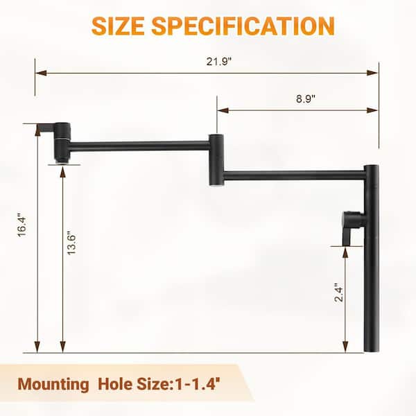 Double Handle Deck Deck Mounted Pot Filler with Double Joints in Matte Black
