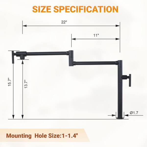 Double Handle Deck Mounted Pot Filler With 360° Spout Swivel in Matte Black