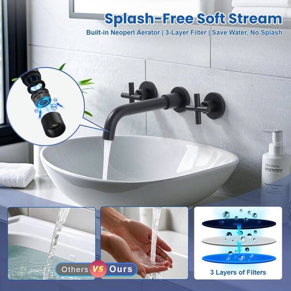 Double Handle Wall Mounted Bathroom Faucet in Matte Black
